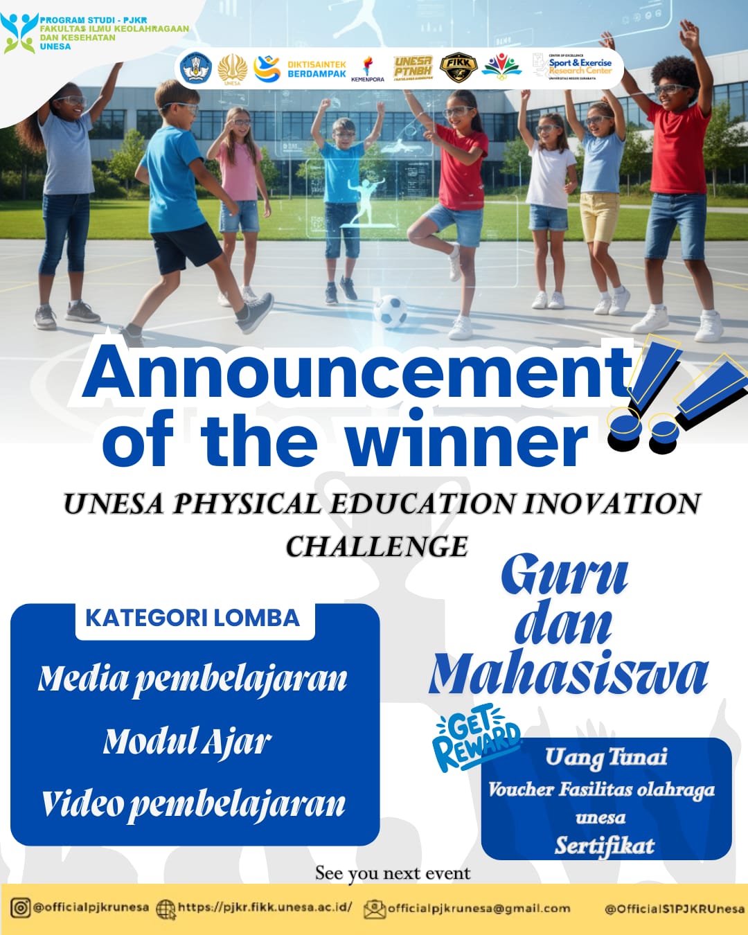 SURABAYA — On Monday, October 13, 2025, the winners of the UNESA Physical Education Innovation Challenge 2025 were announced.Surabaya State University, in collaboration with the Bachelor of Physical Education, Health, and Recreation Stud