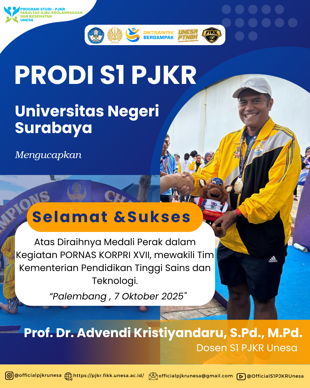 Surabaya – The Bachelor of Physical Education, Health, and Recreation (PEHR) program at the Faculty of Sports and Health Sciences of Universitas Negeri Surabaya (UNESA) has once more showcased its national superiority. Prof. Dr. Advendi Krist